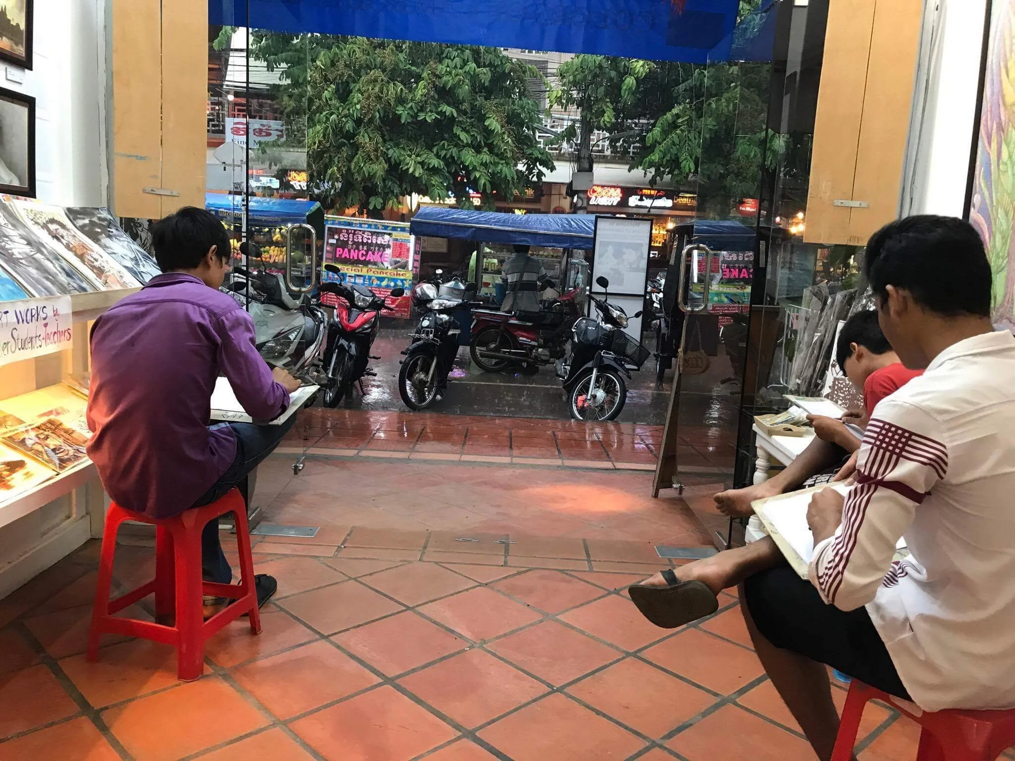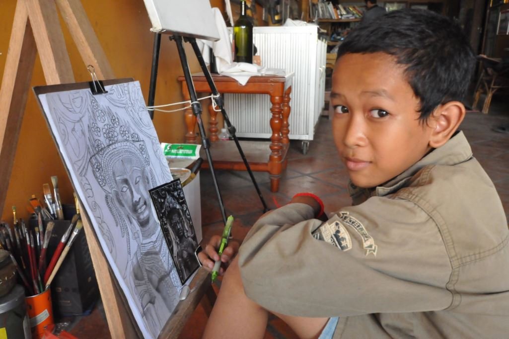 In 1999 he began teaching drawing and watercolors at one particular location south of Siem Reap. He used his tuk tuk driver as a translator. This endeavor soon expanded to more schools and the project progressed and in 2003 a building was purchased in the center of Siem Reap. Though now having its own school house, classes at countryside schools continued, and do to this day. Every week, Monday to Friday, kids at numerous school houses continue to benefit from COC’s free art instruction. Nearly a thousand children participate in COC classes monthly in the Siem Reap province. And art education videos are under development in Khmer language too, so the COC initiative can expand throughout Cambodia!